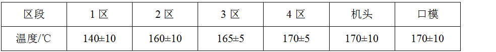 采用單螺桿擠出機(jī)加工,螺桿長(zhǎng)徑比L/D≥20,推薦參考加工溫度如下: