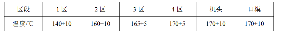 采用單螺桿擠出機(jī)加工,螺桿長(zhǎng)徑比L/D≥20,推薦參考加工溫度如下: