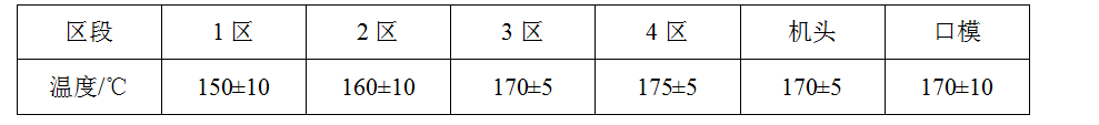 采用單螺桿擠出機(jī)加工,螺桿長(zhǎng)徑比L/D≥20,推薦參考加工溫度如下: