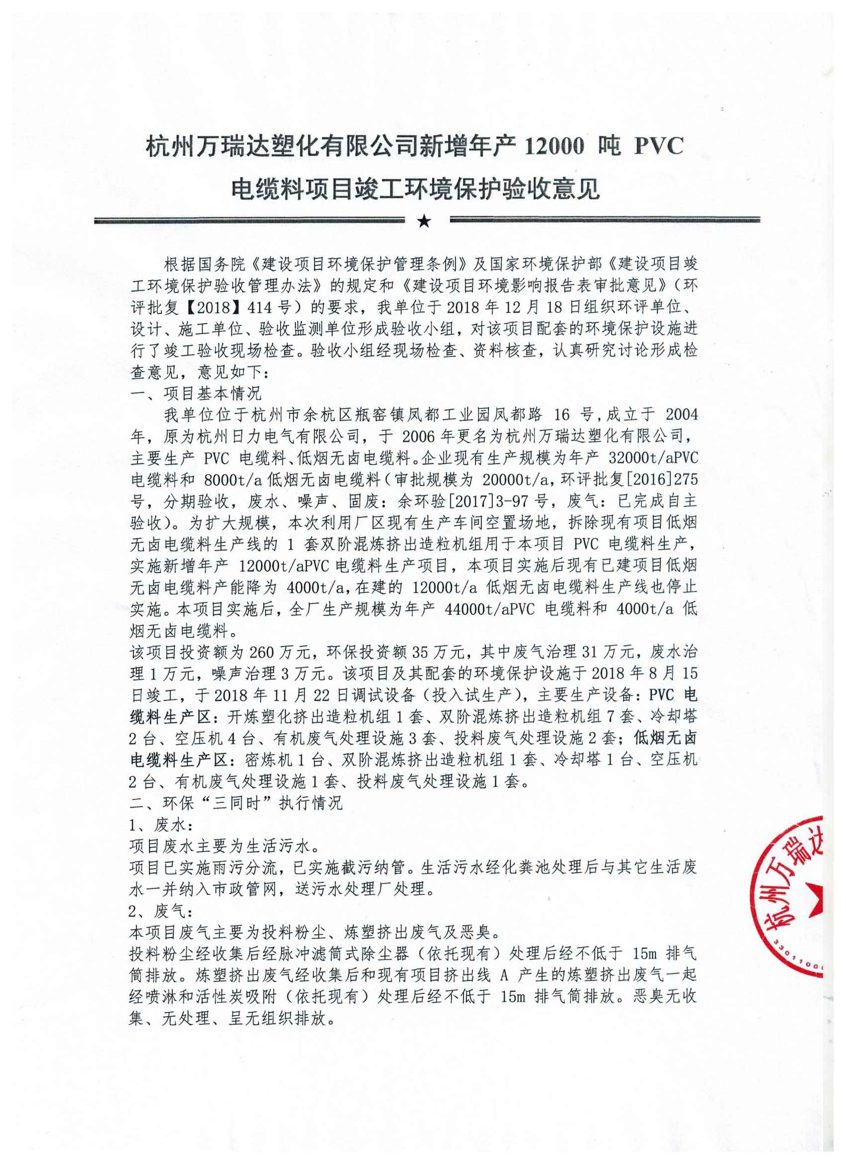 新增年產(chǎn)12000噸PVC電纜料項(xiàng)目竣工環(huán)境保護(hù)驗(yàn)收意見公示